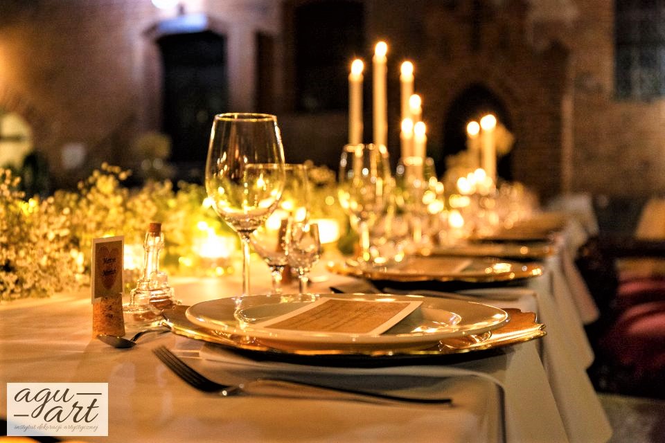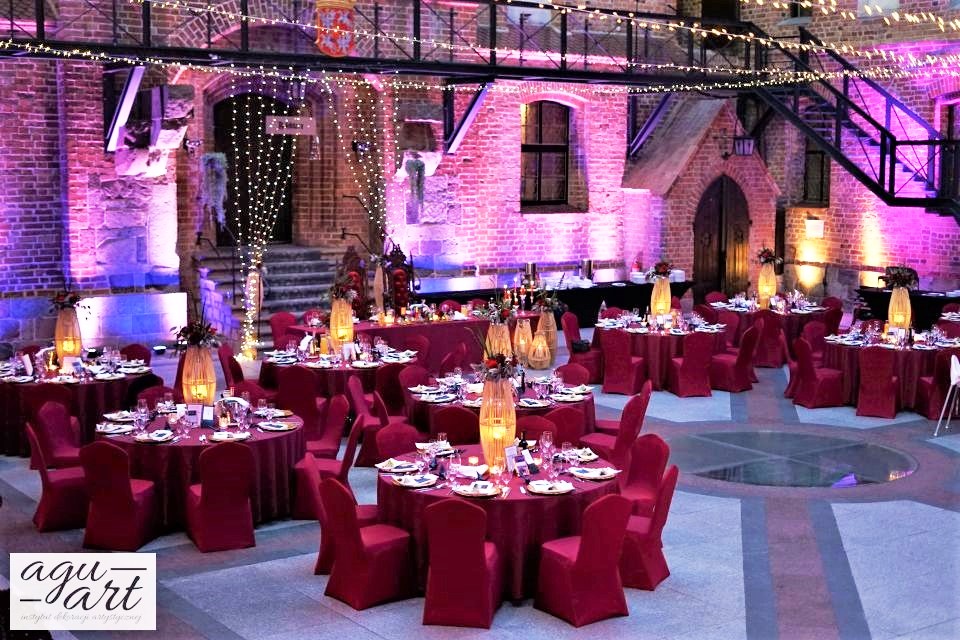 Mamy doświadczenie w tworzeniu dekoracji sali weselnej łączących zróżnicowane style. Przykładem jest “Orientalny Zamek” wykonany na zamku w Gniewie, który jest inspirowany dwiema odmiennymi kulturami — polską i tajwańską. Połączyliśmy orient z ceglanym zamkiem zbudowanym w stylu gotyku, co dało widowiskowy i jednocześnie spójny efekt. W naszym portfolio znajdują się inne, równie oryginalne dekoracje sali weselnej, które mogą posłużyć Parze Młodej jako dodatkowa inspiracja.