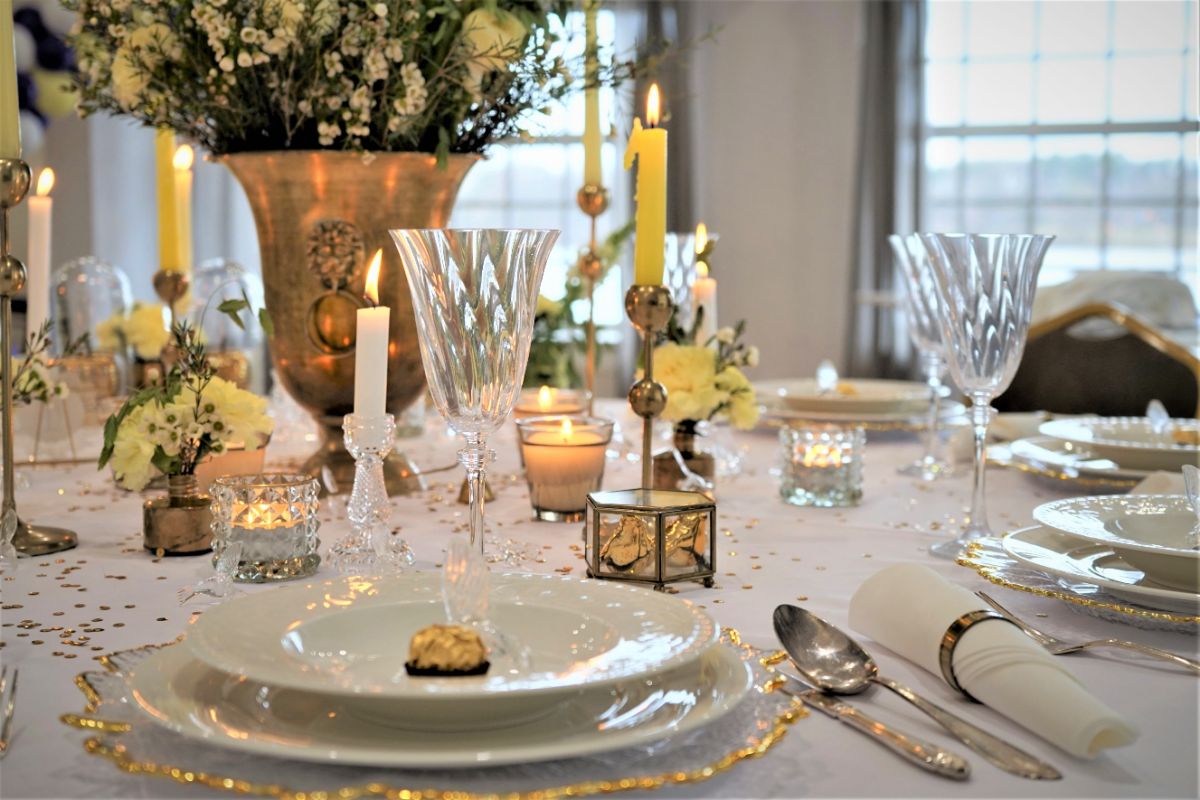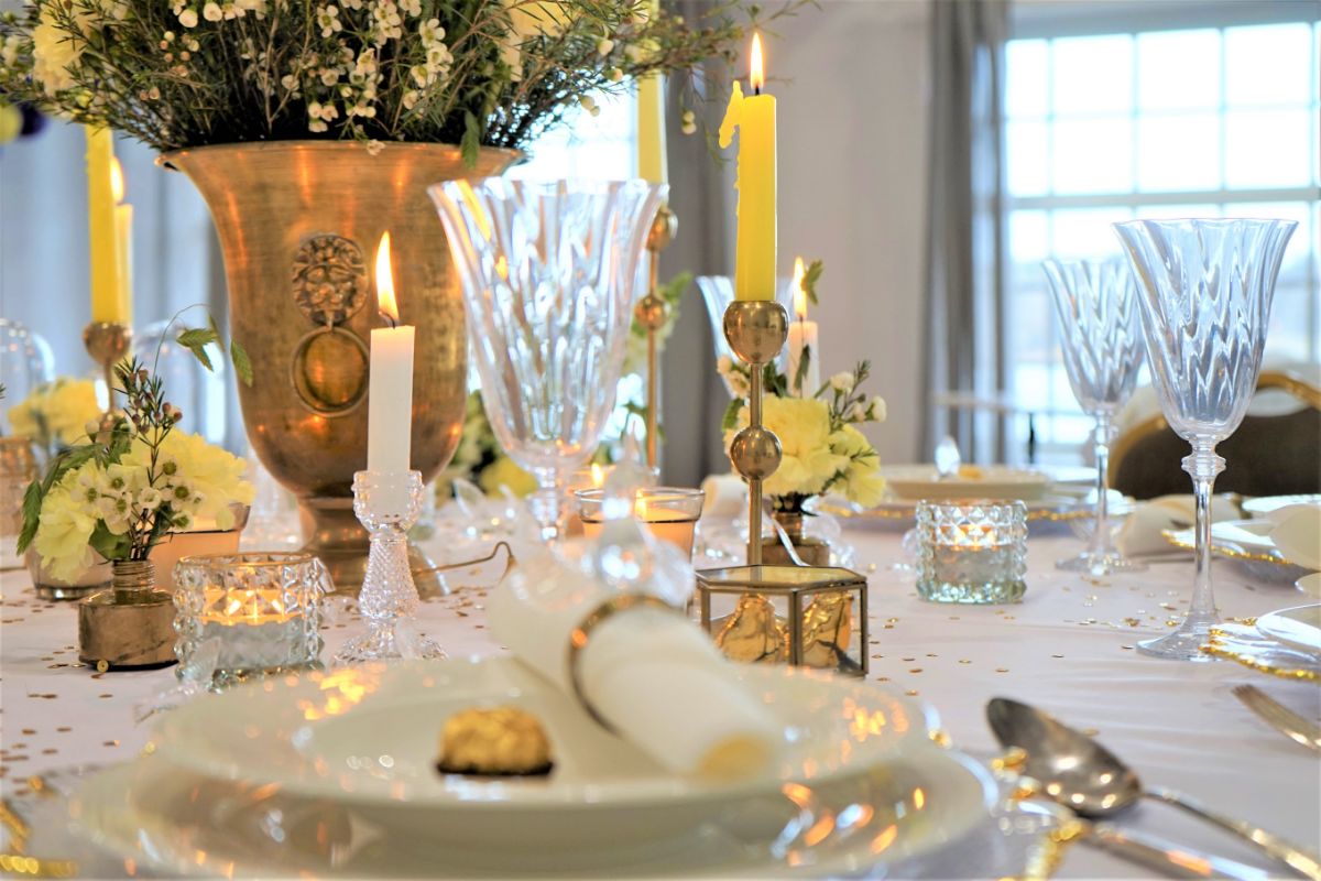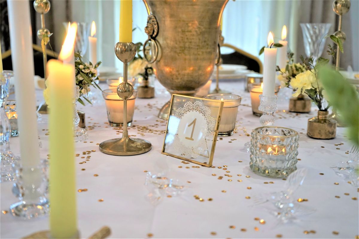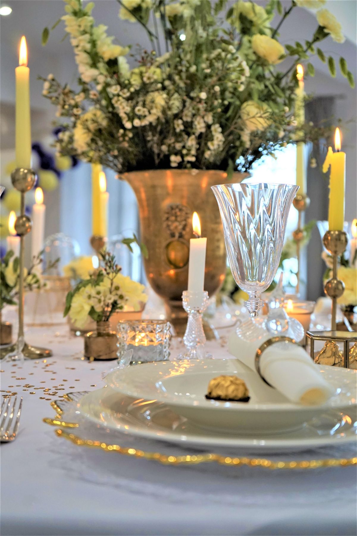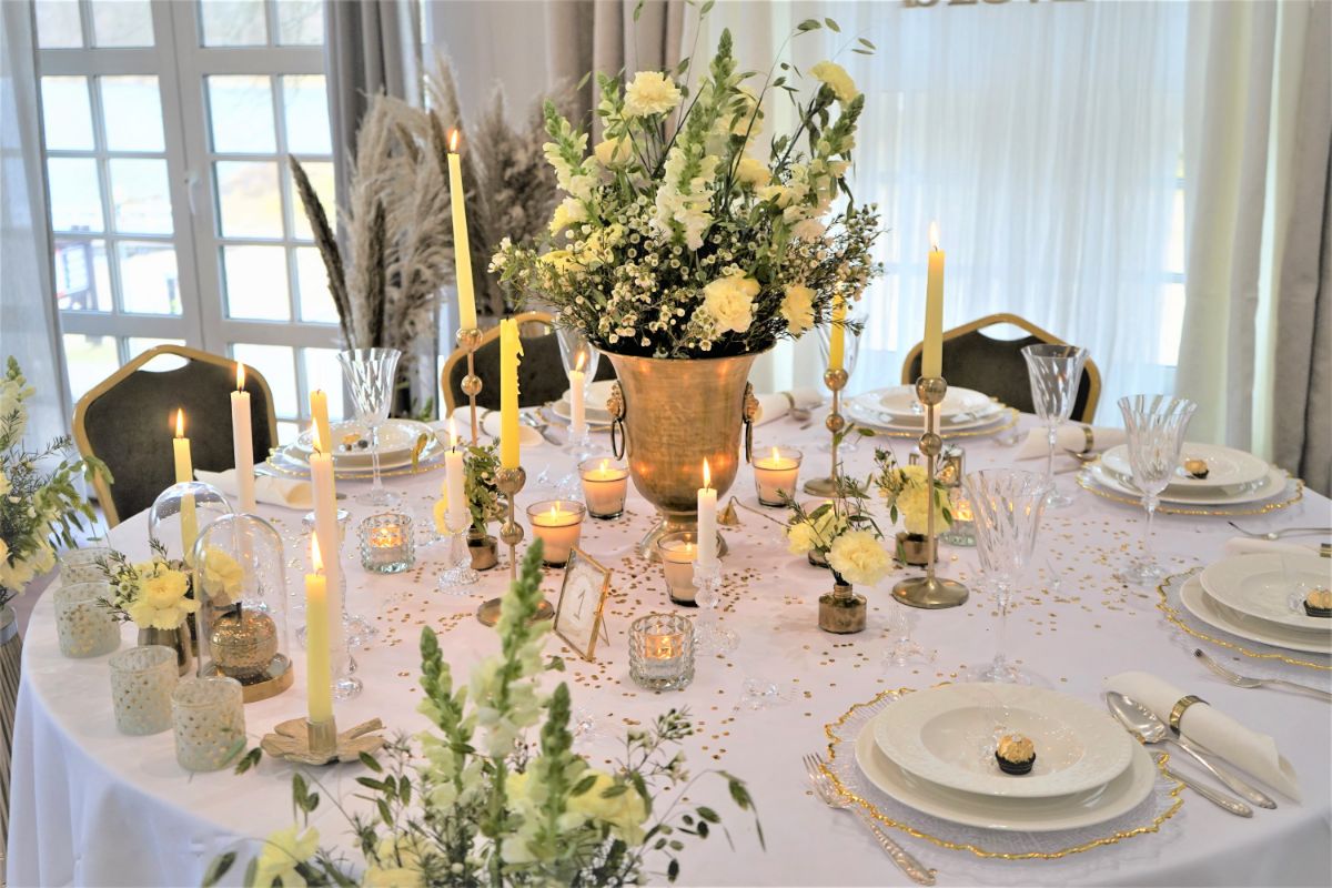 W Restauracji Nad Jeziorem Jeleń stworzyliśmy dekorację w kolorze cytrynowym. Inspirację kolorystyczną dała nam rozkrojona cytryna która była niezwykle świeża i orzeźwiająca jak nasza dekoracja. Cytrynowy kolor kwiatów oraz wszystkich dodatków, działał na klientów i ich gości jak letnie opadające promienie słoneczne. Dekoracja wprowadzała wszystkich w sielski, słoneczny nastrój. Złote dodatki nadawały elegancji i podniosłości chwili. Trawy Pampasowe oraz bambusowe lampiony dodaliśmy jako przełamanie stylu glamour.