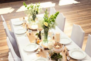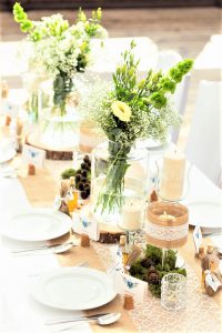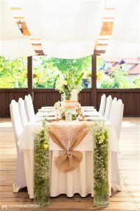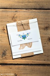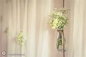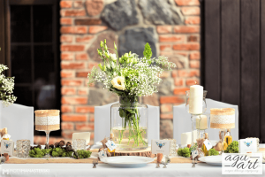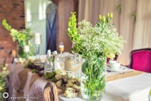 Dekoracja ślubna "Na Kaszuby" to projekt przygotowany na sali weselnej w Dworku na Błotach w Sierakowicach dla Karoliny i Mateusza. Dekoracje z żywymi kwiatami, jutą przepasaną koronkami, mchem, drewnem oraz wzorem kaszubskim jako motywem przewodnim była przednią zabawą. Naturalne wykończenia dekoracyjne pozwoliły nam stworzyć dekorację ślubną o wyjątkowo przaśnym klimacie. Ręcznie przygotowywane zaproszenia, winietki oraz inne elementy papeterii wniosły do naszego projektu indywidualnego charakteru, bardzo swojskiego i przytulnego. To dekoracja ślubna która swym urokiem skradła wiele serc naszych klientów.