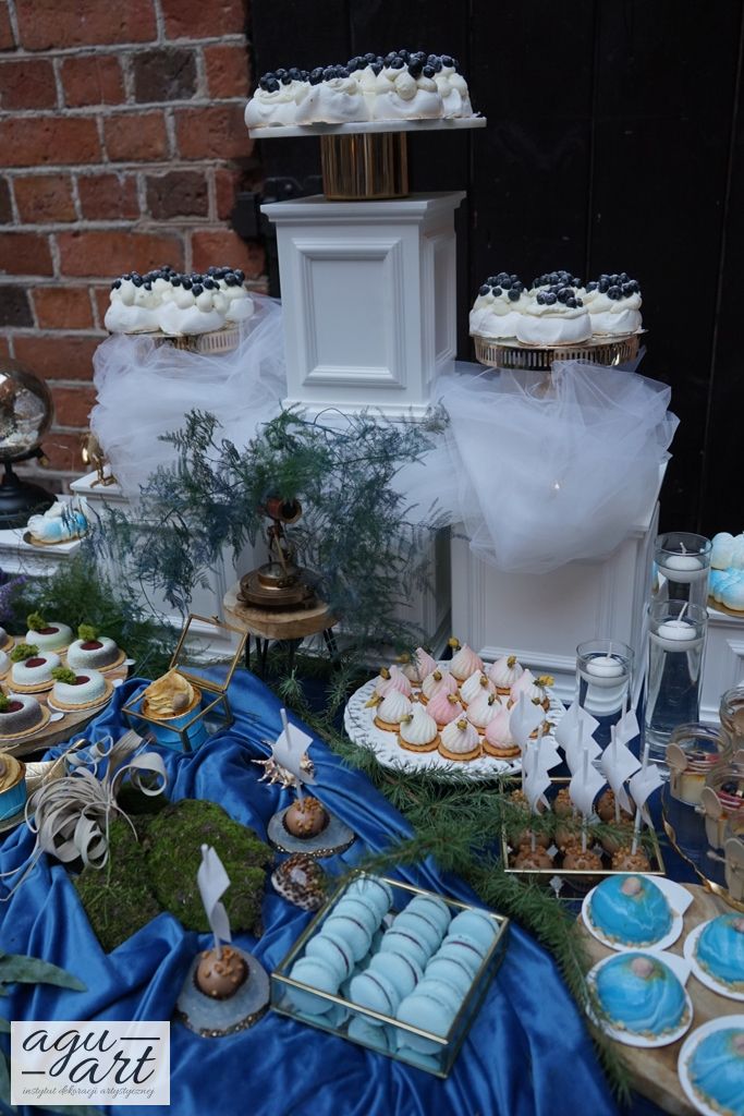 Elementy dekoracji, które wykorzystaliśmy w tym projekcie dekoracji sali, starannie dobraliśmy do siebie tak, by jeden wynikał z drugiego. Cały zamysł dekoracji podkreśliliśmy również oświetleniem architektonicznym w odpowiedniej kolorystyce, co jeszcze bardziej uwydatniło wszystkie szczegóły zawarte w projekcie ślubnym. Wisienką na torcie stał się właśnie Tort z gwiezdnymi galaktykami oraz słodki stół od Cake-Me w naszym dekoracyjnym zamyśle.