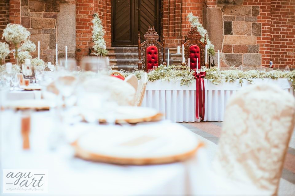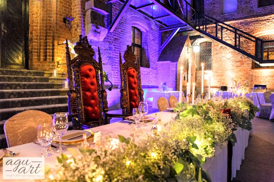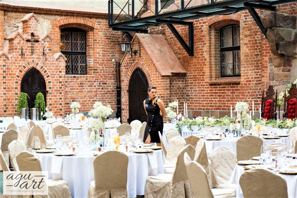 Elegancka Dekoracja ślubna Zamek Gniew to jeden z bardziej wymagających projektów ślubnych, który tworzyliśmy dla naszych Klientów na dziedzińcu Zamku w Gniewie.