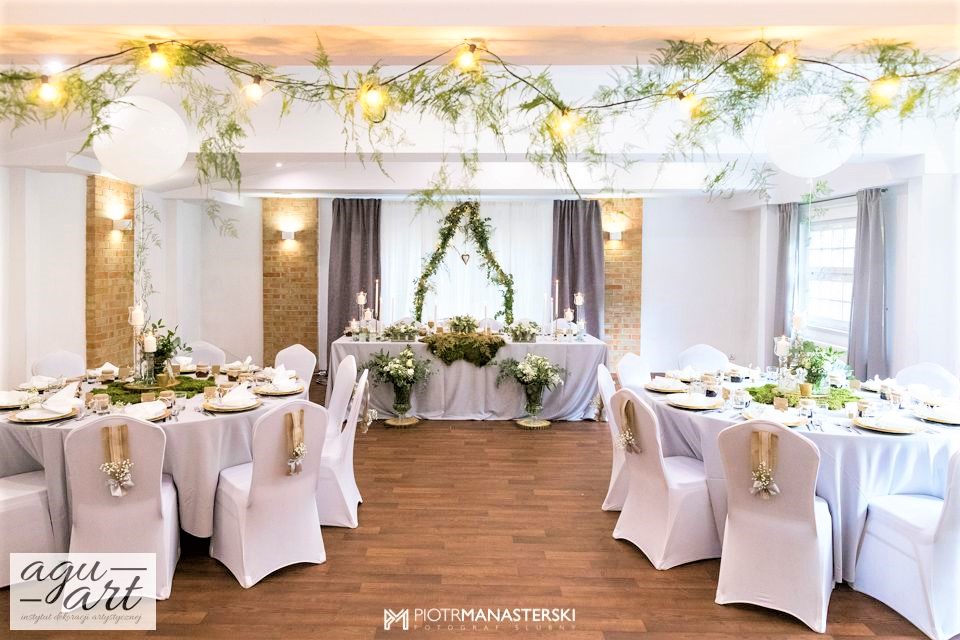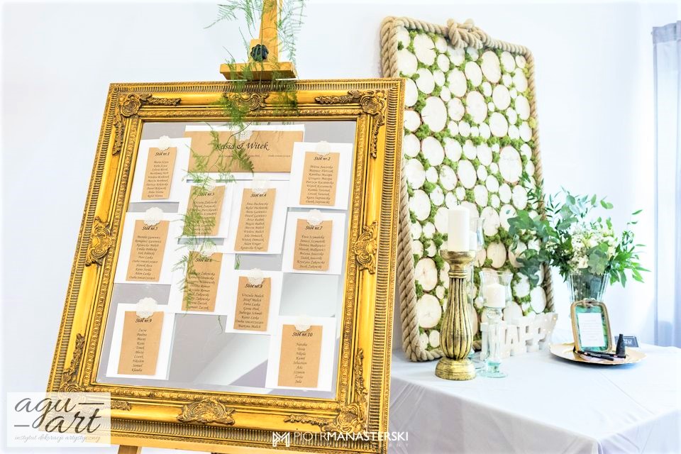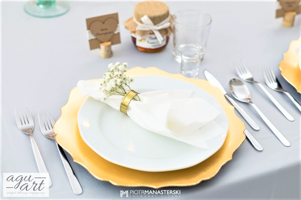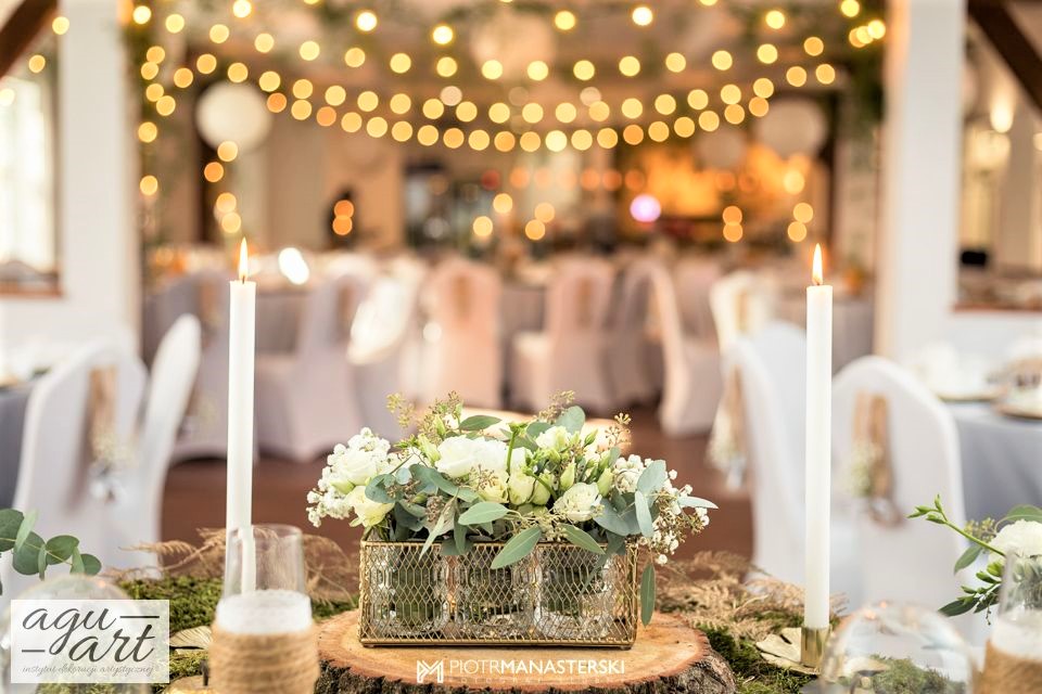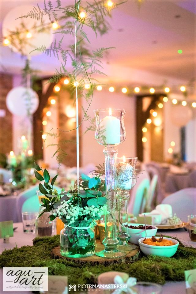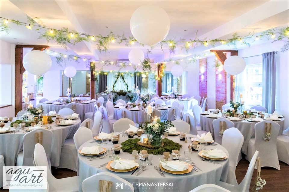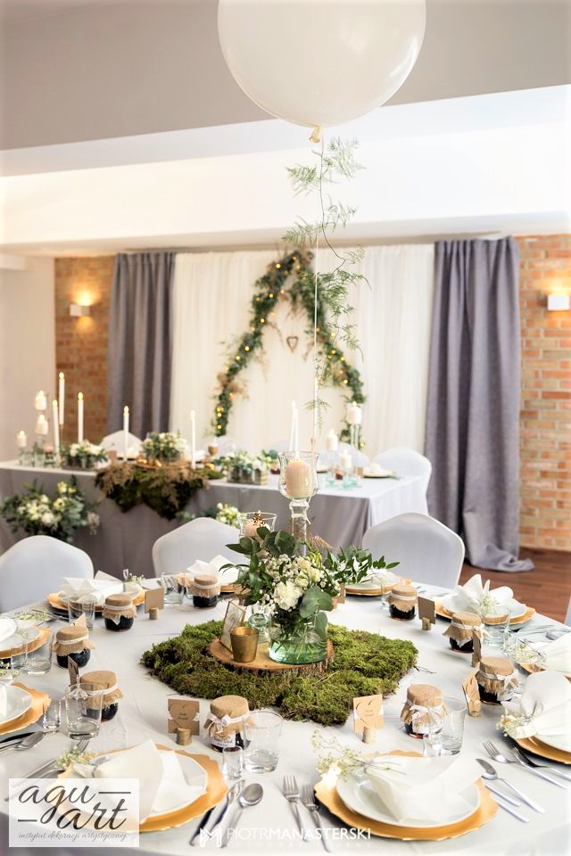Złote Runo to dekoracja ślubna sali weselnej w Restauracji "nad Jeziorem Jeleń" w Bytowie przygotowana dla Kasi i Witka. Do jej przygotowania wykorzystaliśmy zarówno elementy rustykalne jak i glamour, co pozwoliło nam na nietuzinkowe odzwierciedlenie natury nowożeńców. Te elementy to Drewno, mech, juta, koronki przeplatane złotem w postaci eleganckich pod-talerzy, złotych ramek, świeczników, i farbowanych roślin. Bogactwo natury. Połączenie to powoduje, że znajdując się w eleganckiej restauracji jednocześnie odczuwamy naturę lasu. Ten nietuzinkowy wystrój wnętrza doceniła nie tylko para młoda, ale też goście i właściciele Restauracji ” Nad Jeziorem Jeleń”.